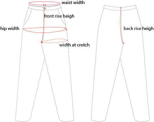 McVERDIs Rie-byxor har den mest klassiska passformen av McVERDIs byxor och är förmodligen det par byxor som passar de flesta kroppstyper. De har anpassats under flera säsonger och är varken höga eller låga i midjan, utan ett bra mellanting. Observera att vidden på benen, detaljerna och längden varierar från modell till modell, men nedan hittar du de mest grundläggande måtten på Rie-byxorna.